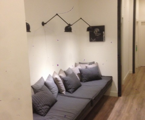 Proyecto realizado en pleno centro de Barcelona, de la mano de una decoradora realizamos trabajos tales como mesitas de noche, Lamparas, forrar pilares, taburetes, mesas, mueble recibidor, entrada, rotulo, etc. Un proyecto moderno que mezcla materiales tales como el hierro, la madera y el acero inoxidable dando un toque muy elegante. Todos los materiales son muy buena calidad.