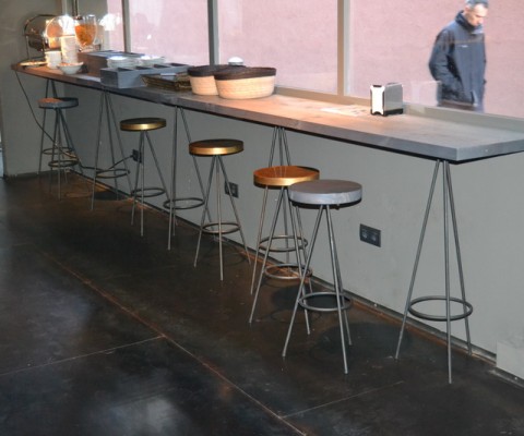 Reforma en hotel de Barcelona nacida de la mano de una decoradora, surge este proyecto de hotel en el cual realizamos diferentes trabajos como el suelo de hierro, el mostrador y mobiliario varios como mesas y tamburetes